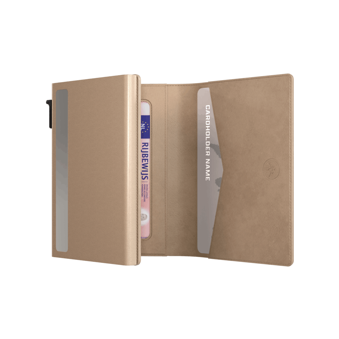 All our wallets have the same strong aluminum base. This housing offers powerful RFID protection for all cards in the holder. RFID stands for Radio Frequency Identification, the technology that is abused by cyber criminals to remotely force bank card payments.