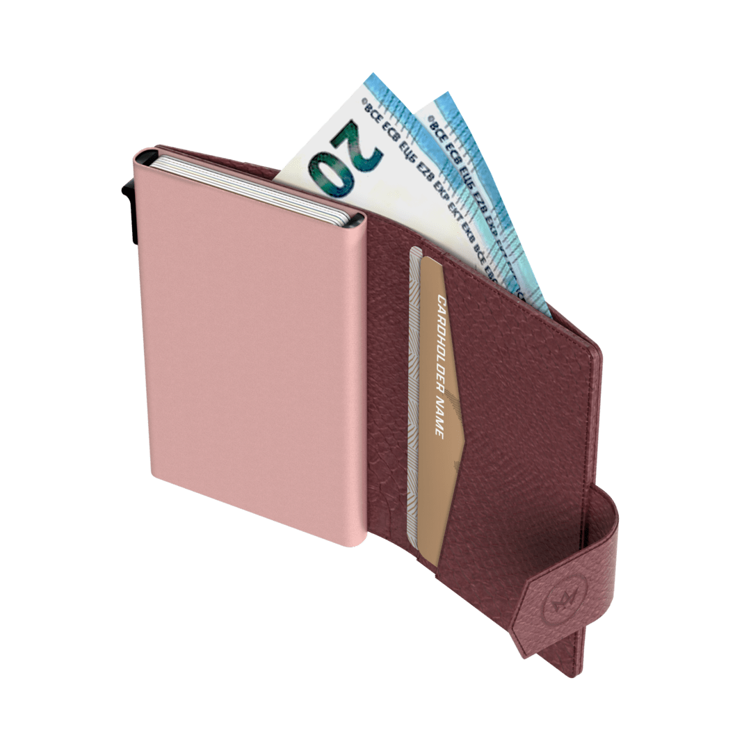 There is a slider at the bottom of the wallet. By pressing this button, the cards are smoothly pushed out of the casing in steps. You can then immediately see which card you need. This way you always have your most important cards ready for use.