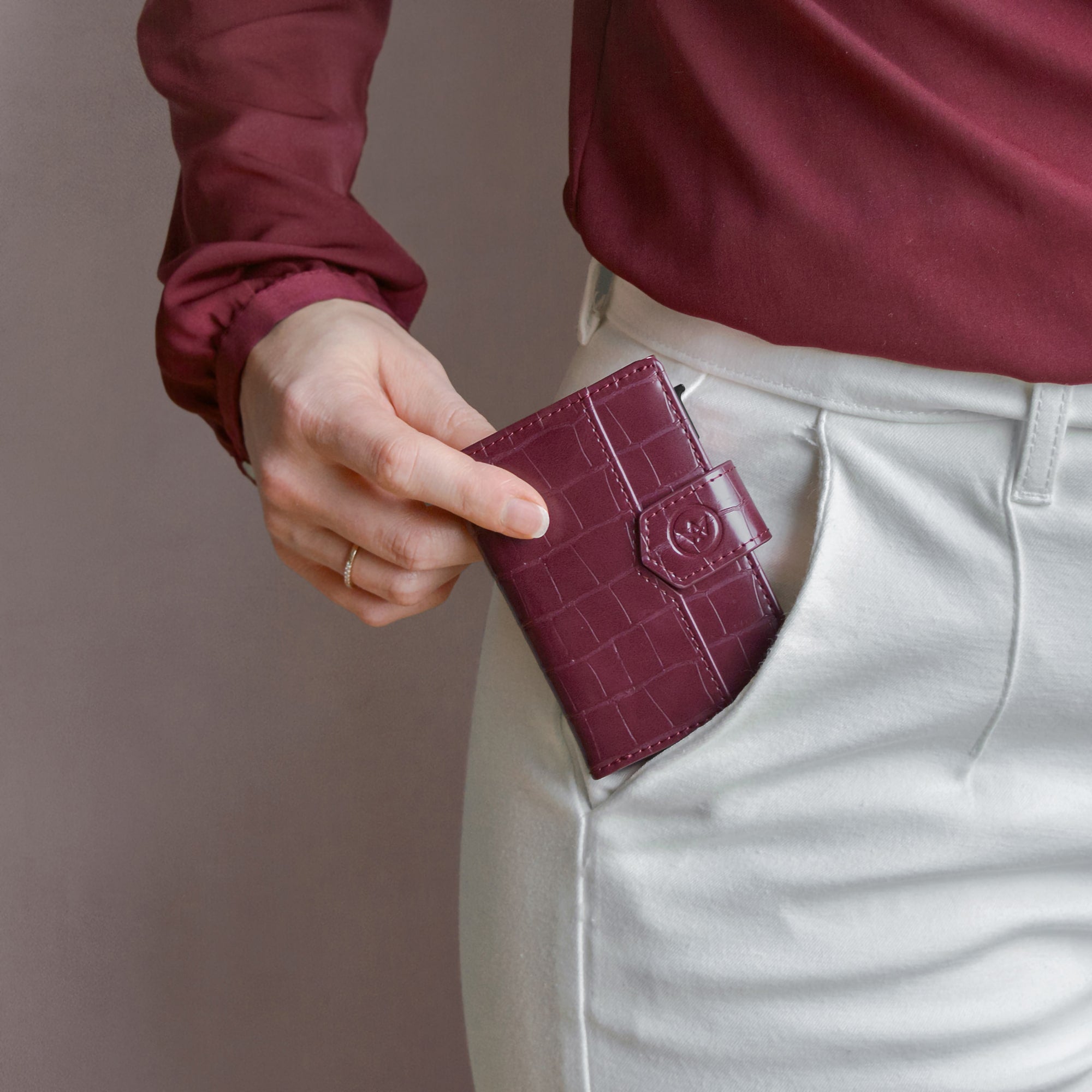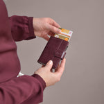 Brauchst du Karten? Mit dem Schieberegler an der Seite der Wallet schiebst du deine Karten ganz geschmeidig stufenweise aus dem Halter, bereit zur Verwendung.