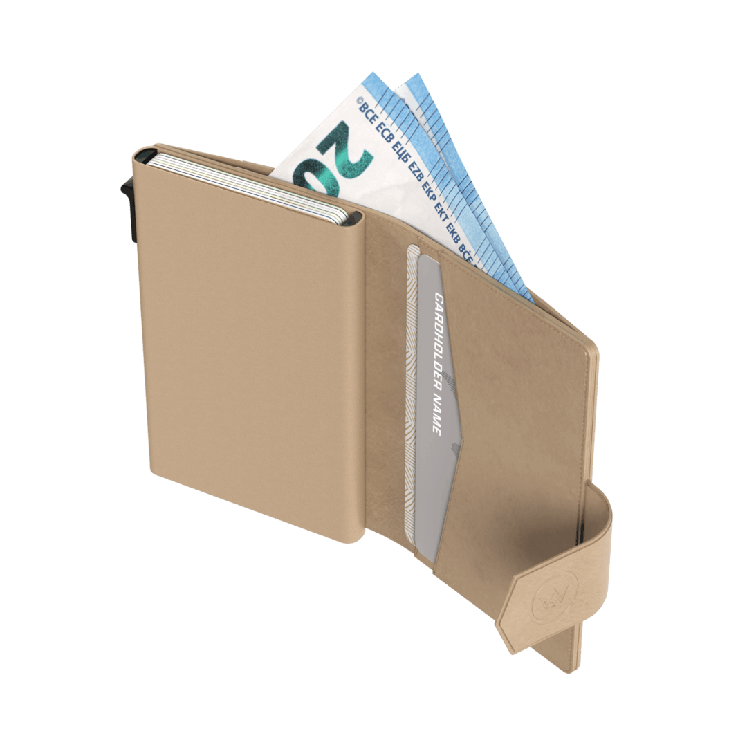 Brauchst du Karten? Mit dem Schieberegler an der Seite der Wallet schiebst du deine Karten ganz geschmeidig stufenweise aus dem Halter, bereit zur Verwendung.
